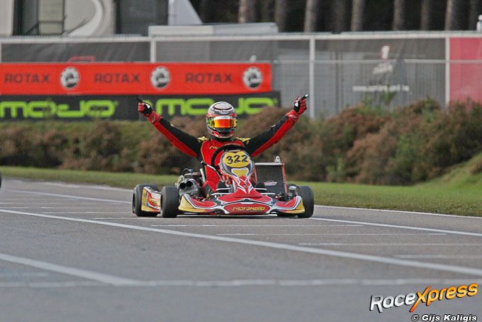 GENK, België - Tim Berndt is bij het GK4-kampioenschap in Genk als tweede geëindigd in de Open Schakel-klasse. Tevens werd hij gedeeld tweede in de eindstand en dat terwijl hij de openingsrace van het seizoen gemist had. De 22-jarige karter uit Stadskanaal, afkomstig uit een echte racefamilie, was in de derde en laatste race oppermachtig. Van de zesde plaats stoomde hij door naar de koppositie om die vervolgens alleen maar uit te breiden. "Als ik geen pech krijg en we hebben droge omstandigheden, ben ik veruit de snelste. Ik ben blij dat we de laatste manche met een zege hebben kunnen afsluiten."