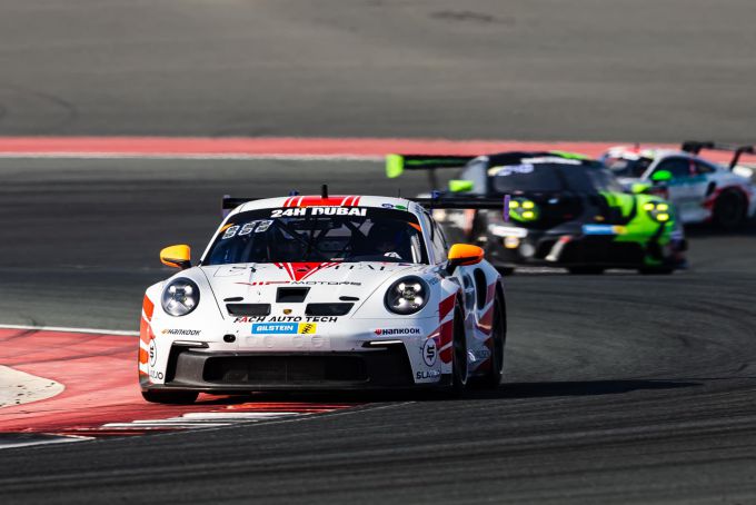 Een één-twee overwinning in de 992-Divisie, het had niet beter kunnen gaan voor FACH Auto Tech tijdens de Hankook 24 Hours of Dubai 2023! In de #962 Porsche 911 GT3 Cup behaalden Larry ten Voorde, Huub van Eijndhoven, Alexander Schwarzer, Gabriele Rindone en Matthias Hoffsümmer de eerste plaats in de 992-klasse. Het vijftal in de #961 zusterauto completeerde het succes in de 24H Series door als tweede in de klasse te eindigen. "Ik ben voor het eerst sprakeloos", zei Larry Ten Voorde na afloop. “Het was mijn vierde start in deze race, het is me nooit gelukt om te winnen, nu is het eindelijk zover! Dat was natuurlijk niet mogelijk geweest zonder mijn teamgenoten, een snelle auto en de goede strategie van het team. Dat de zusterauto op de tweede plaats eindigde, is natuurlijk geweldig. Het was heel spannend tussen ons tot aan het einde.”
