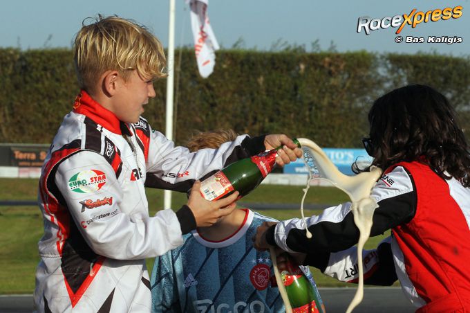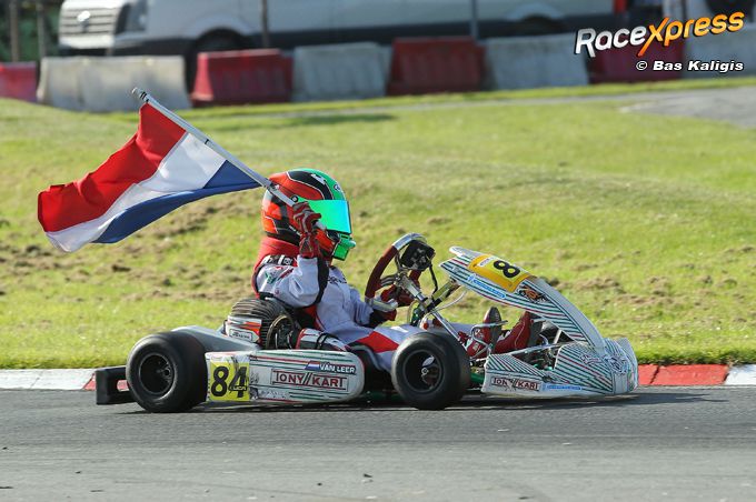Maar in de derde race was het dus nog even spannend. Na een mooi gevecht eindigde Luca als tweede en daarmee wist hij zich te verzekeren van de titel. Zodoende kon de snelle rijder, die op technisch vlak ondersteund wordt door Albert Broeders, een ererondje met de Nederlandse vlag rijden om zijn kampioenschap te vieren.