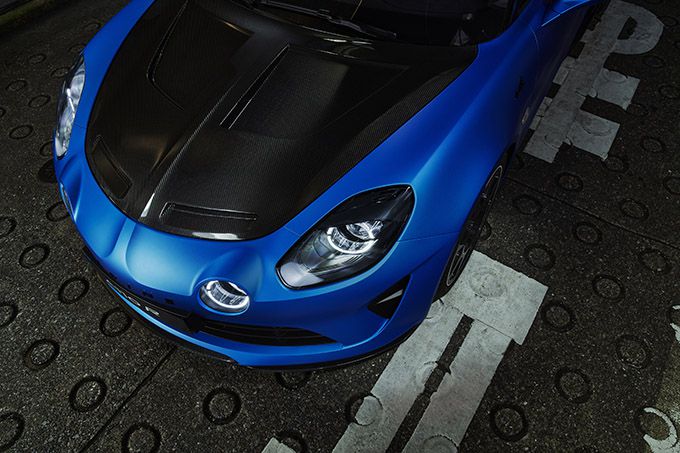De Alpine A110 R is ontwikkeld met het doel om het potentieel van de auto volledig te benutten met het beste evenwicht tussen neerwaartse druk en luchtweerstand. Daarom is de voorzijde van de A110 R voorzien van dezelfde carbon lamel als de A110 S, maar dan in combinatie met beweegbare kleppen in de voorste luchtinlaat. De kleppen genereren 14 kg extra neerwaartse druk op de vooras van de A110 R, terwijl de luchtweerstand tot een minimum is beperkt en de topsnelheid hoger ligt.
