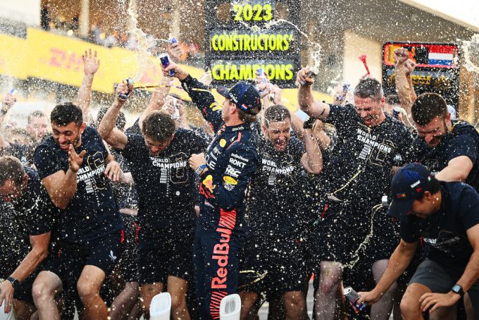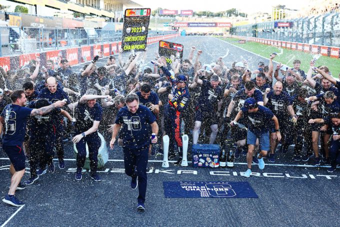FOTO'S: Max Verstappen middelpunt van Red Bull-feestje om constructeurstitel