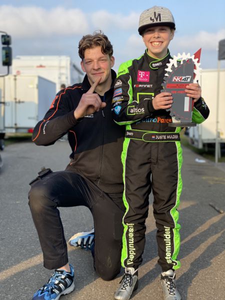 Vader Gerard Mulder genoot langs de kartbaan onder de rook van het TT Circuit. “Dit is geweldig en het resultaat waar we op hoopten. Tijdens de eerste NK-wedstrijd hebben we punten laten liggen, dus we moesten nu terugkomen. We waren heel blij dat deze baan in Assen als tweede op de kalender stond. In het verleden hadden we hier altijd de snelheid. We rijden nu wel met een ander frame van Energy Kart. Daar racen we ook in het buitenland mee tijdens de Benelux en de Euro Series. We hebben dit weekend via videobellen met het team contact gehad om tot de juiste afstelling te komen. Super tof dat het heeft geleid tot zo’n goed resultaat.”