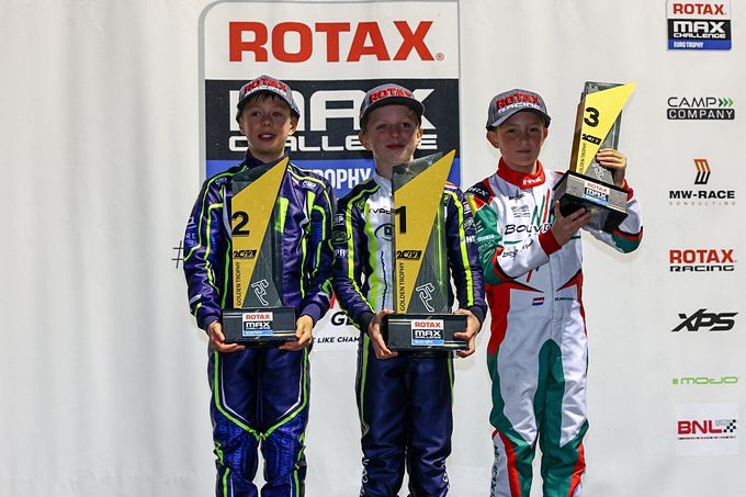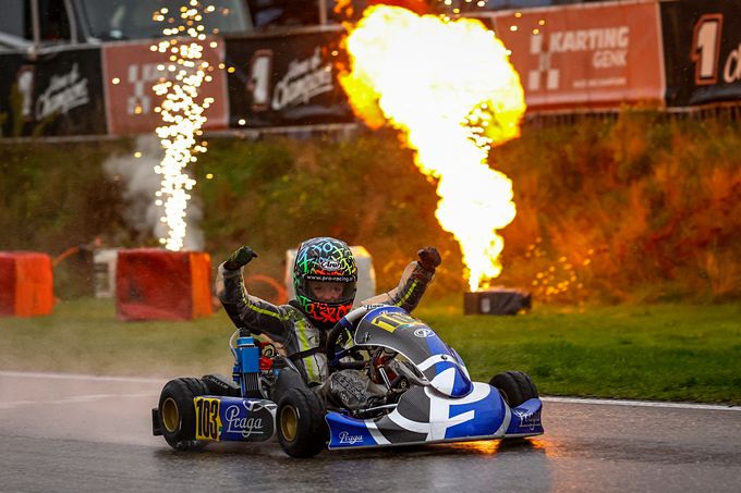 GENK – Hij had al een ticket voor de Rotax Max Challenge Grand Finals, dus wat dat betreft stond er niks op het spel voor karter Mats van Rooijen, zondag in Genk. Maar dat hij de natte Minimax-race won tijdens de Euro Golden Trophy in een ijzersterk internationaal deelnemersveld, zegt veel over zijn snelheid. Het elfjarige talent uit Vleuten reist eind volgende week dan ook met veel vertrouwen naar het WK Rotax Max in Portimăo.