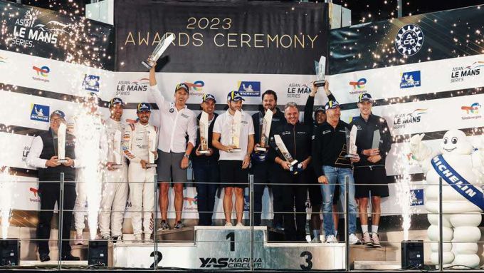 Afgelopen weekend in Abu Dhabi: podium en titel voor Catsburg, Hull en Merrill in de Asian Le Mans Series 2023