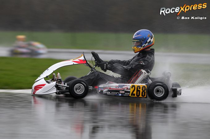 Nee, verbaasd was hij niet over zijn superieure snelheid op de Zuid-Belgische piste. “Vorige week tijdens de collective test op dit circuit zag het er al veelbelovend uit. In de regen reed ik de eerste tijd en de tweede tijd op een droge baan. De basisafstelling van de kart was al goed, maar we zijn er nog beter uitgekomen.”
