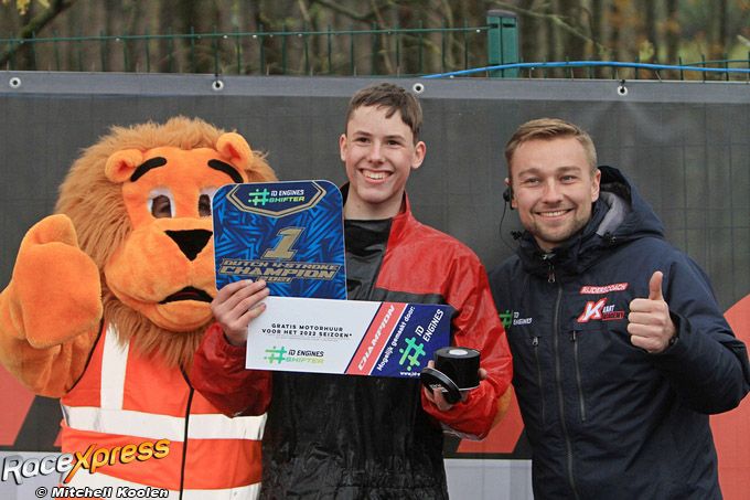 Lucassen won naast de Nederlandse titel een jaar gratis motorhuur. Volgend jaar zal hij weer in de Shifter te bewonderen zijn. Daarnaast begeleidt de kartbaaneigenaar jonge talenten in de Parolin Rocky. "Dat vind ik echt heel leuk om te doen. Ik probeer ze uit te leggen hoe ze beter kunnen worden. Dit weekend is Hylke vijfde algemeen geworden en tweede bij de rookies. Dat is echt heel knap. Roan was vijfde bij de rookies en ook dat was heel goed. Er gaan een paar mooie bekers mee terug naar Ulrum." De kersvers Nederlands kampioen sloot de dag af met een ereronde met de Nederlandse vlag.
