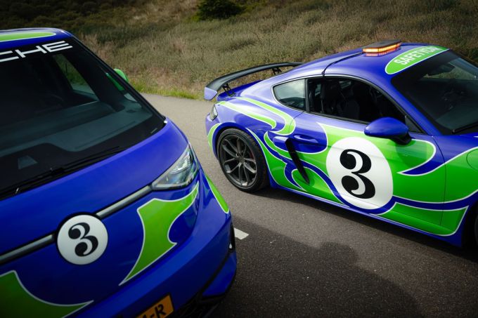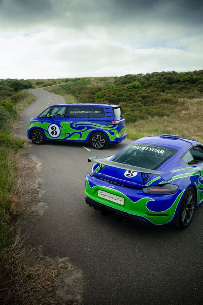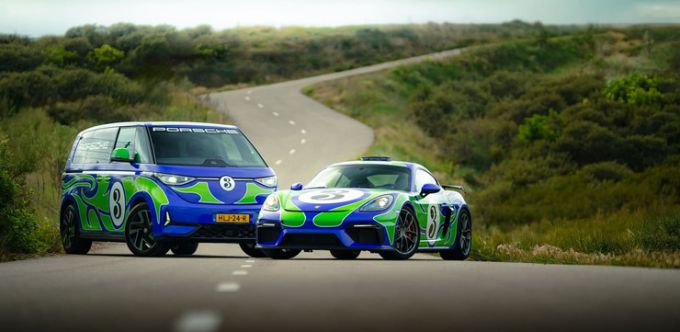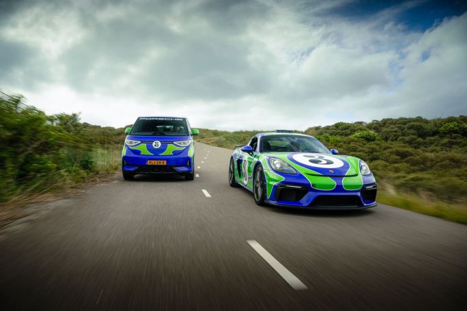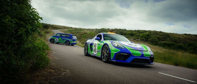 Porsche Nederland introduceert een opvallend duo op en rond het circuit. De Porsche 718 Cayman GT4 Safety Car voor de Nederlandse races van de Porsche Carrera Cup Benelux en de Porsche Sprint Challenge Benelux, en een Volkswagen ID. Buzz. van de Nederlandse importeur zijn uitgevoerd in een iconische Porsche livery. Beide auto’s rijden rond in een iconische “Hippie” livery die een knipoog maakt naar de kleurrijke Le Mans-historie van Porsche.