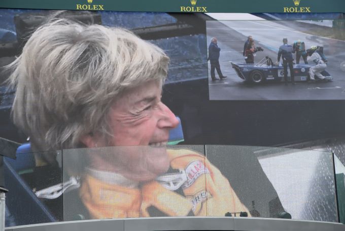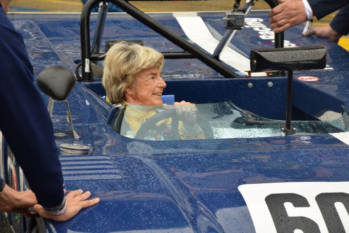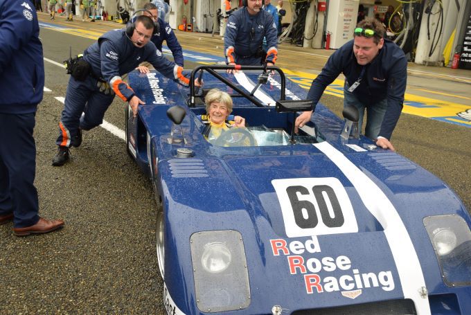 Dus ging ze naar de startlijn van de 24 uur van Le Mans in een Chevron B23, identiek aan het exemplaar dat ze destijds bestuurde. De omroeper van het evenement - Bruno Vandestick - stelde haar een paar vragen, onder applaus van het publiek dat al op de tribunes van het circuit zat.
