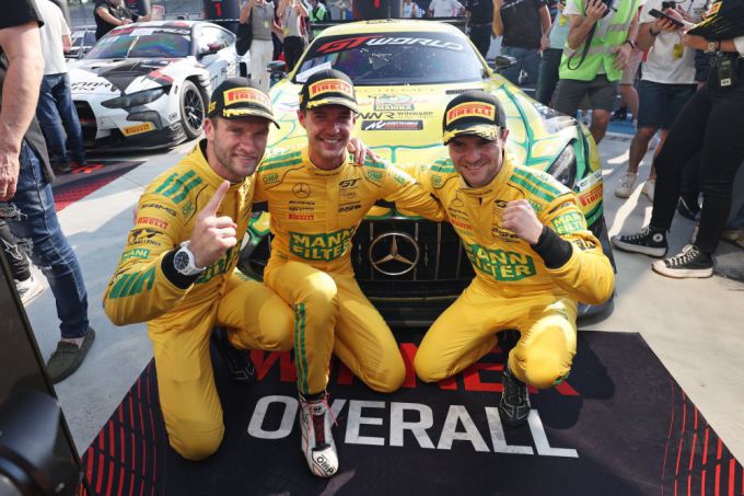 Mercedes-AMG boekte met Engel (Platinum) / Cairoli (Platinum) / Auer (Platinum) zijn eerste Endurance Cup-overwinning op Italiaanse bodem (v.l.n.r.)
