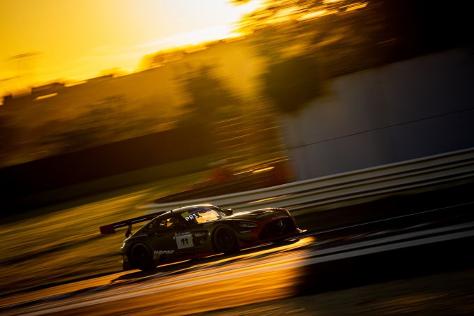 Het Mercedes-AMG-team had echter pech met de timing van de Code 60-fasen, die de wedstrijdleiding oproept om de race voor het bergen van voertuigen te neutraliseren. Dit zorgde ervoor dat het team tijd verloor op zijn directe concurrenten. De grijs-roze Mercedes-AMG eindigde de race op de zesde plaats, wat overeenkomt met de tweede plaats in de GT3 Am-categorie.