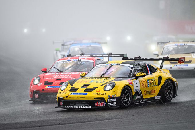 Als regenrijder pur sang amuseert Jaap zich op de glibberige baan. In de eerste drie a vier ronden is de baan nog echt nat en wint de ervaren Porsche-coureur drie posities. “Daarna droogt de baan te hard op, waardoor de regenbanden te warm worden en je geen grip meer hebt. Het was overleven en ik ben blij dat het is gelukt. Twaalfde en drie plekken gewonnen is ok gezien het geheel.”