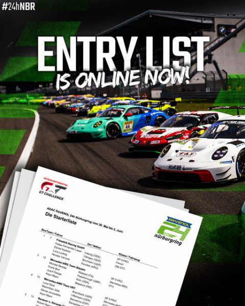 Klik HIER voor de deelnemerslijst van de ADAC RAVENOL 24h Nürburgring 2024