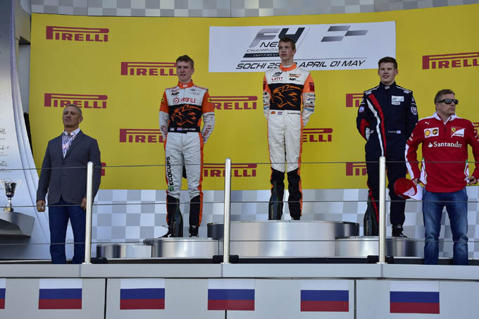 De eerste twee wedstrijden van het Noord-Europese zonekampioenschap (NEZ) Formule 4 werden dit weekend verreden in het raamprogramma van de Russische Grand Prix op het circuit van Sotsji. Door een gezamenlijk initiatief van de KNAF en MP Motorsport is er met ingang van dit jaar een Nederlandse sectie van het SMP F4 NEZ kampioenschap. Daarin kwamen in Sotsji met KNAF Talent First-rijder Richard Verschoor (15 jaar) en KNAF Academy-pupillen Jarno Opmeer (15 jaar) en Danny Kroes (16 jaar) drie jonge Nederlandse talenten aan de start. Voor alle drie de uit de karting afkomstige rijders betekenden de wedstrijden rond het complex waar in 2014 de Olympische Spelen werden gehouden meteen ook hun debuut in de autorensport.