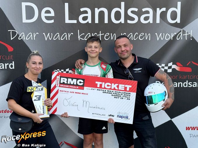 EINDHOVEN - Oliwier Mazurkiewicz uit Berghem heeft zich zondag in Eindhoven verzekerd van een felbegeerd ticket voor de Rotax Max Grand Finals. Tijdens de zesde ronde van het Nederlands kampioenschap Rotax Max toonde het twaalfjarige karttalent zijn klasse met de vierde plaats in de kwalificatie, de tweede plaats in de prefinale en de derde plaats in de finale van de Minimax-klasse. De grote bonus was dus het ticket voor de RMCGF 2024, die dit jaar plaats vind op het mooie Circuito Internazionale di Napoli in Sarno onder de rook van de Vesuvius!