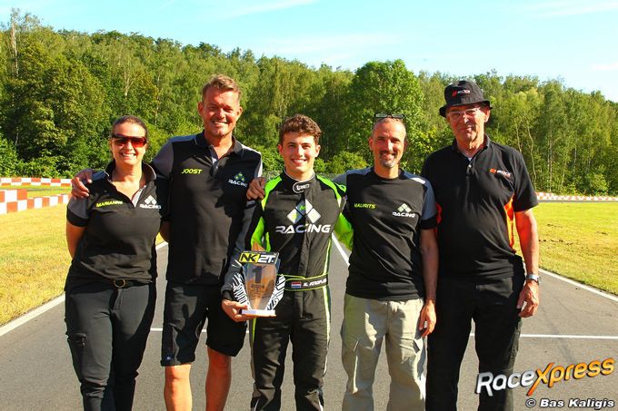 Tegelijkertijd keek hij uit naar de rest van het NK. “We hebben topmateriaal, de Sodi is een goede kart. Dirk van der Pol zorgt voor een goede motor en carburatie. We hebben echt niks te mopperen. Als je dan ook een goede rijder hebt, dan valt alles samen en dan domineer je”, doelde hij op de prestaties van zijn zoon. “Laten we hopen dat we met de ondersteuning van Multibel het de rest van het seizoen zo kunnen houden. We willen kampioen worden en naar het WK voor Rotax Max-rijders!”