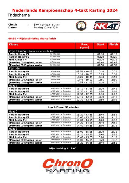 Wedstrijdinformatie NK 4-takt van Chrono Karting Ronde 2 op Kartbaan Strijen