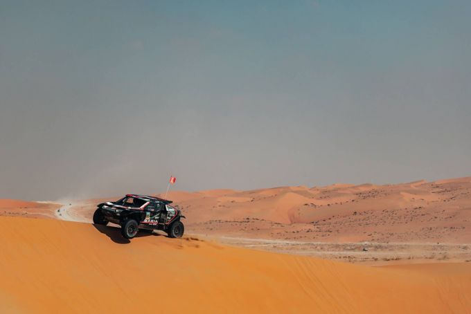 Etappe 11 (donderdag 16 januari): Hoewel het bereiken van de finish de hoogste prioriteit bleef, weerhield het Al-Attiyah/Boulanger en Gutiérrez/Moreno er niet van om opnieuw het tempo en het potentieel van de duurzaam aangedreven Dacia Sandrider te demonstreren door op te laden. Al-Attiyah/Boulanger voltooiden de voorlaatste dag van de rally in de zandduinen van het Empty Quarter in Saoedi-Arabië als tweede, ondanks het stoppen om twee beschadigde banden te verwisselen. Gutiérrez/Moreno staan ongeveer 40 minuten stil om hun cruciale ondersteunende rol voor Al-Attiyah/Boulanger te vervullen.