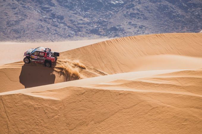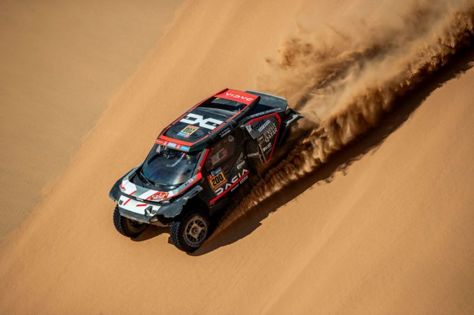 De Qatari zette zijn Dacia Sandrider op de derde plaats in het algemeen klassement - 11 minuten en 14 seconden achter leider in de Ultimate-klasse Henk Lategan - terwijl zijn teamgenoot Sébastien Loeb terugvocht van een oververhittingsprobleem om sterk te eindigen en minder dan 20 minuten achter de Zuid-Afrikaan te finishen. Al-Attiyah, 54, zei: "We hadden een lekke band in de laatste 50 km en ook een probleem met de stuurbekrachtiging. Het was moeilijk om deze etappe door te komen met al het stof."