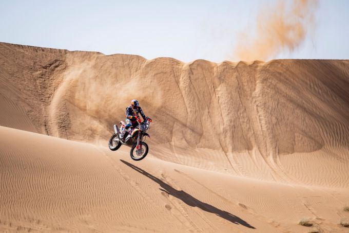 Terug op twee wielen vergrootte de Australiër Daniel Sanders zijn voorsprong op de motor naar 12 minuten en 36 seconden op de Amerikaan Skyler Howes, met Red Bull KTM Factory Racing-teamgenoot Luciano Benavides als zesde nadat hij de hele tijd moeilijk had gedaan. Sanders, 30, zei: "Als je opent, is er geen rij, dus je weet niet of het een zachte of harde duin wordt. Iedereen dromde samen vanwege het stof, dus we vochten om de openingsbonus. Ik voel me helemaal niet moe. Ik ben klaar voor wat nog komen gaat."