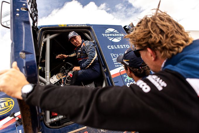 Even later kwam ook vader Martin van den Brink over de streep. De 54-jarige ‘veteraan’ stapte ook met een goed gevoel uit de Iveco van MM Technology. ,,Toch een feestelijk tintje,’’ aldus Martin. ,,We zijn Kay voorbijgegaan. Het was toch nog een gevaarlijke proef met veel keien. Kay stond stil in een rivierbedding. Je weet maar nooit wat er kan gebeuren. Ook in de laatste special kan het misgaan. Kay had een gescheurde turboslang, maar kon wel verder. We zijn tevreden. Jammer van de tegenslag in de eerste dagen. We hebben echter gestreden voor wat we waard waren. We zijn tweede geworden en Mitchel heeft gewonnen. We gaan tevreden naar huis.’’