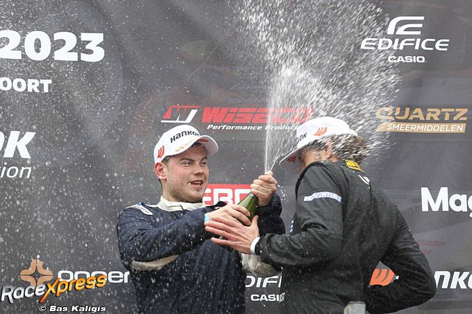 De eerste race op zaterdagmiddag ging Oscar van start en zou Mark tijdens de verplichte pitstop halverwege het stuur overnemen. Vianen ging goed van start, maar zakte wat terug. “Ik had door de koudere omstandigheden wat moeite om temperatuur in mijn banden te krijgen”, blikte de Woerdense autocoureur terug. Na een gedegen eerste stint met constante rondetijden nam Jobst het stuur over vanaf een zesde positie in de race. ”Ik moest een behoorlijk gat dichtrijden om weer te winnen”, knipoogt Jobst, die in 2021 en 2022 ook al de winst behaalde tijdens de openingsraces op zijn thuiscircuit.