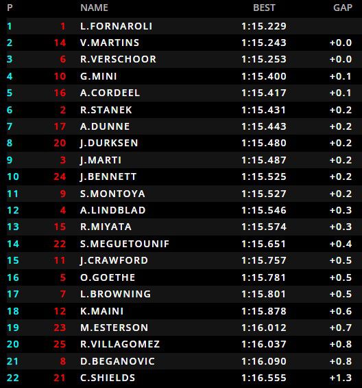 Amaury Cordeel reed een sterke sessie en pakte P5, voor Roman Stanek en Alex Dunne, die tijdens de eerste vrije training voor de Formule 1 nog naar de vierde tijd reed in de McLaren van Lando Norris.