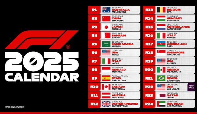 De Formule 1 heeft de kalender voor 2025 bekend gemaakt. De kalender kent wederom 24 Grands Prix en het jaar 2024 zal de boeken in gaan als de 75e verjaardag van het kampioenschap. De F1 keert terug naar haar traditionele start van het seizoen in Australië in het weekend van 14-16 maart, waarna het circus over vijf van de zeven continenten reist. Het seizoen wordt afgesloten in het weekend van 5-7 december in Abu Dhabi. Het doel van de nieuwe kalender is om de regionale races meer te bundelen, wat de duurzaamheid ten goede komt.