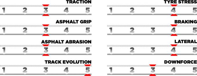 Ook is er een andere toewijzing van slicks per coureur dan tijdens een standaardweekend: ze hebben nog steeds twee sets Hard, maar krijgen nu een extra set Medium (van drie naar vier) en twee sets Soft minder (van acht naar zes). In totaal zijn er dus 12 in plaats van de gebruikelijke 13.