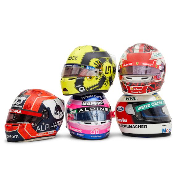 Een opmerkelijke collectie Formule 1-helmen en -overalls van enkele van de beste coureurs in de sport, waaronder zes Formule 1-wereldkampioenen, wordt ook aangeboden tijdens de veiling. De collectie bevat legendes zoals Lewis Hamilton, Nigel Mansell, Alain Prost, Damon Hill, Charles Leclerc en Pierre Gasly. Hoogtepunten van de collectie zijn onder andere Michael Schumachers gebruikte helm uit 1991, gemaakt door Shoei en vermoedelijk gebruikt in zijn beginjaren als kartcoureur, geschat op 30.000 tot 50.000 dollar, en Leclercs gebruikte helm uit de Grand Prix van Turkije van 2020, gemaakt door Bell, geschat op 25.000 tot 35.000 dollar.