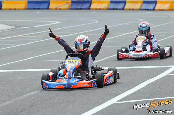 Hoe dat dan komt? “Misschien door de ervaring die ik heb opgedaan in de Euro Series in Mariembourg?”, vroeg hij zich hardop af. “Daar heb ik heel veel geleerd. Inhalen, dat je rustig moet rijden, rustig sturen. Nu sta ik dus aan kop in de GK4. Dit is mijn mooiste seizoen tot nu toe. Natuurlijk hoop ik straks kampioen te worden!”