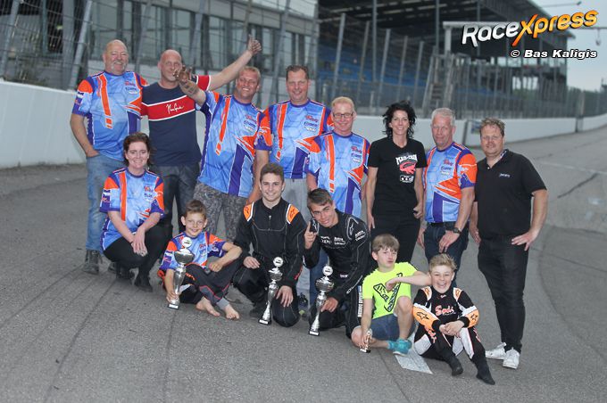 Dylan Visser bedankt zijn vader en moeder, Kurt Timmermans van TK Racing en zijn monteur Roy.