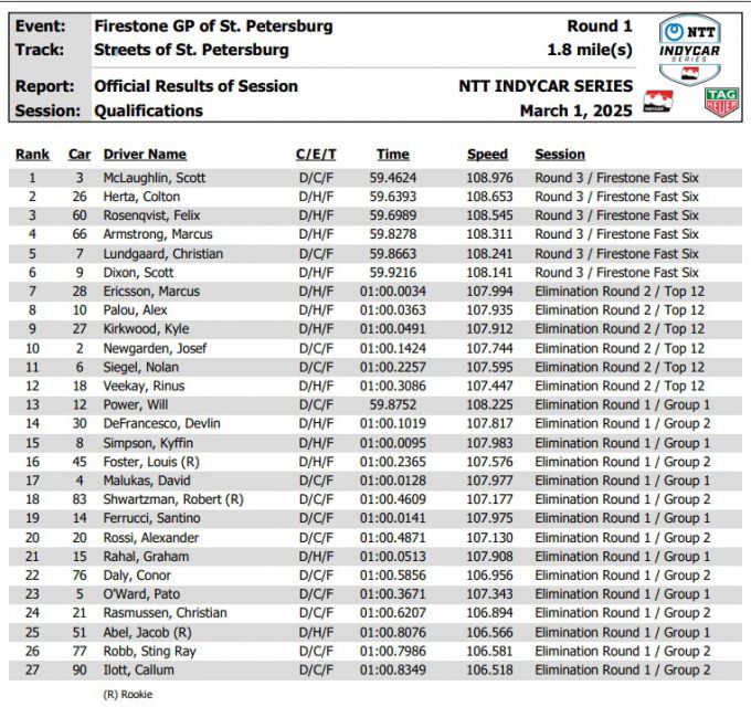 McLaughlin hield Colton Herta en Felix Rosenqvist in de Fast Six achter zich.