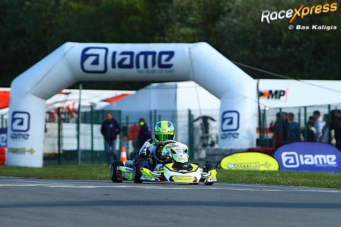 OSTRICOURT - Met een indrukwekkende clean sweep liet Milan Becu zondag zien waarom hij in de Mini-klasse tot de beste karters van de Benelux behoort. De razendsnelle Belg uit Wichelen, die uitkomt voor het topteam van EGP, won tijdens de tweede ronde van de IAME Series Benelux op overtuigende wijze de kwalificatie, beide heats én de finale op het uitdagende circuit van Ostricourt in Frankrijk.