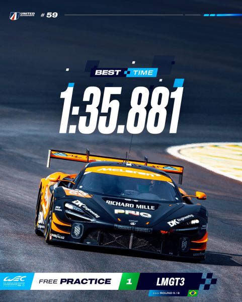 - #59 United Autosports McLaren zet snelste tijd neer in FP1 terwijl thuisheld, hij komt uit Sao Paulo, Nicolas Costa piekt met een beste tijd van 1.35.881.