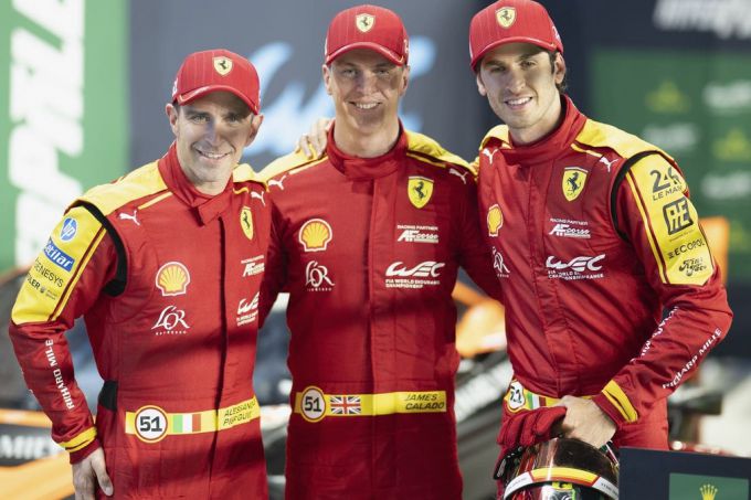 Voor de bemanning van Pier Guidi-Calado-Giovinazzi is dit de tweede pole in de afgelopen 24 maanden: de Italiaanse coureur Giovanazzi kwalificeerde de Ferrari in september vorig jaar in Austin ook als eerste. Eerder waren teamgenoten Fuoco-Molina-Nielsen als eerste gestart in Sebring en Le Mans in 2023 en in Imola het jaar daarop.