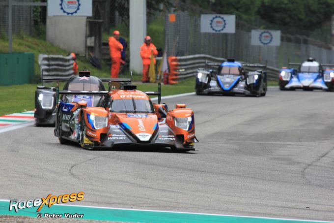 De Nr13 Inter Europol Competition Ligier-Nissan van Nigel Moore en Martin Hippe aan de leiding van de LMP3-divisie.
