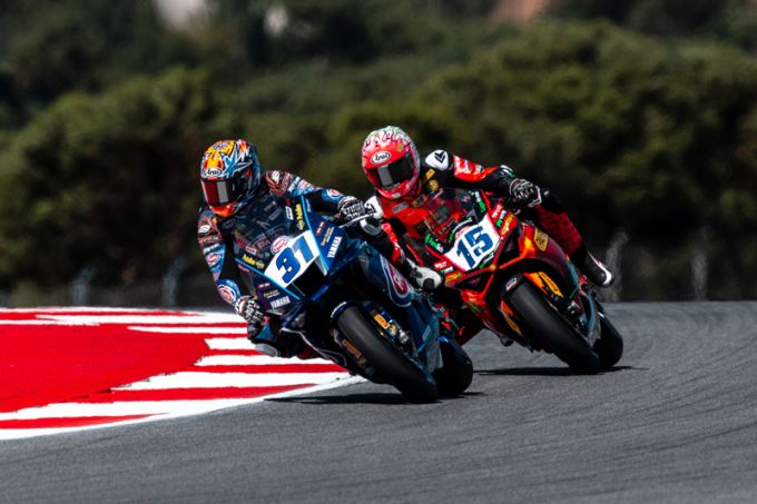 Pata Yamaha Ten Kate Racing doet goede zaken! Stefano Manzi is na zijn bijzondere podium op zijn verjaardag in de eerste race ook zondag wederom als tweede gefinisht in de tweede World Supersport race op het Autódromo Internacional do Algarve in Portugal. De Italiaan was verwikkeld in de strijd voor de overwinning maar moest uiteindelijk settelen voor de tweede plaats. Hiermee verlaat Manzi het Portugese circuit met twee trofeeën en zal hij als leider in het kampioenschap over twee weken richting Assen gaan voor de thuisrace van Pata Yamaha Ten Kate Racing.