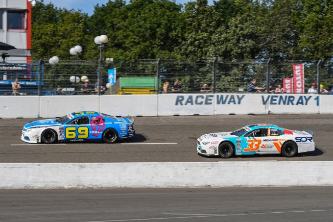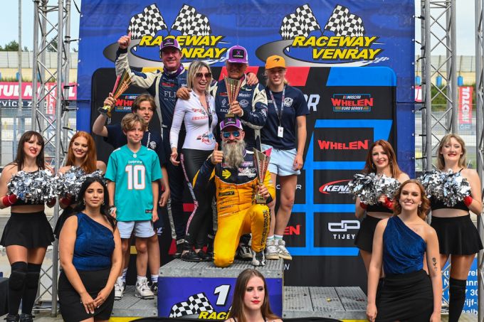 Michael Bleekemolen en Melvin de Groot op podium bij EuroNASCAR in Venray