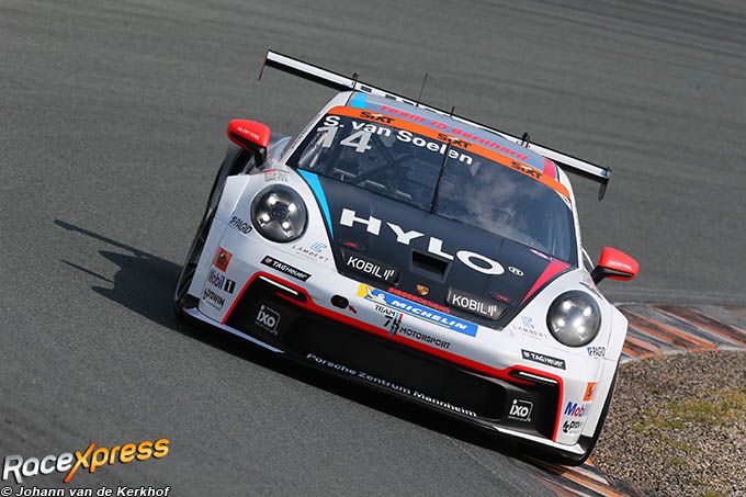 ZANDVOORT - Wanneer de wedstrijdleiding het gebruik van regenbanden op de startgrid toestaat, betekent dat doorgaans een zenuwslopende start voor de coureurs van de Porsche Sixt Carrera Cup Deutschland. Dat was zaterdag zeker het geval op Circuit Zandvoort. Donkere wolken pakten zich samen boven het met duinen omzoomde circuit aan de Noordzee, waardoor de 30 deelnemers op het laatste moment een bandenkeuze moesten maken. Hoewel de baan hier en daar vochtig bleef, kozen alle coureurs uiteindelijk voor slicks voor hun Porsche 911 GT3 Cup-auto's. "De racelijn was droog, dus ik had geen andere keuze", legde Porsche Junior Alessandro Ghiretti uit, die poleposition had veiliggesteld voor de Schumacher CLRT. Starten vanaf de linkerkant van de startgrid bleek echter nadelig, omdat het asfalt nog licht nat was. Janne Stiak, die zich als tweede had gekwalificeerd, startte naast Ghiretti aan de drogere rechterkant.