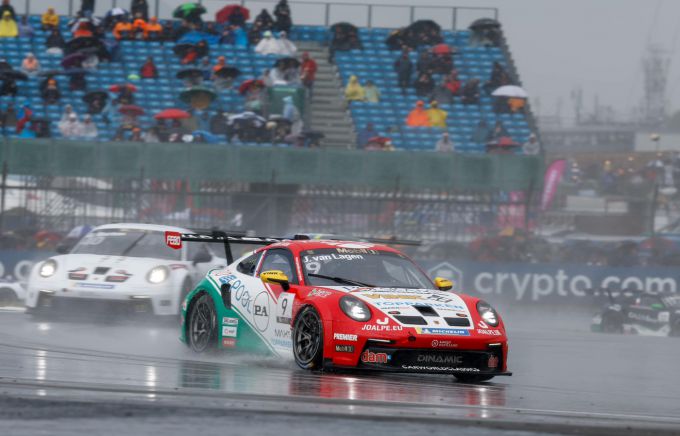 Jaap van Lagen beleefde een intense vierde ronde van de Porsche Supercup. Tijdens de ingekorte race hield de Edenaar ferm stand en scoorde op circuit Silverstone zijn derde top 10 resultaat op rij: negende! Het historische en heroďsche circuit in het hart van het Verenigd Koninkrijk werd afgelopen weekend tijdens de vrije training en de race nog spannender. De regen viel met bakken uit de hemel. En in de regen komt het nog meer aan op stuurmanskunst.