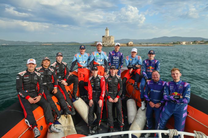 Alle top-coureurs in de Rally Italia Sardegna bij elkaar op weg naar Olbia