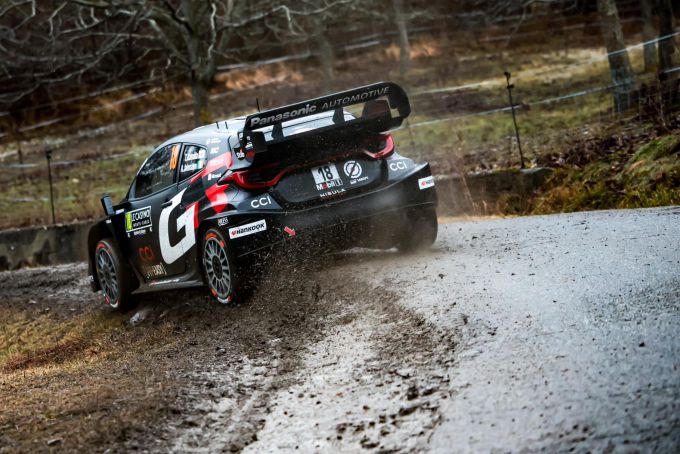 Achtvoudig wereldkampioen Sébastien Ogier, die op deze wegen op jacht was naar een ongekende 10e overwinning, zat slechts 0,1 sec achter Rovanperä in zijn GR Yaris Rally1. De Fransman erkende de moeilijke omstandigheden en herhaalde de opmerkingen van Tänak: "Het is vrij typisch Monte Carlo - hier is niet veel sneeuw, maar wel veel water. De wegen worden snel vuil, dus het zou wel eens een heel uitdagend weekend kunnen worden."