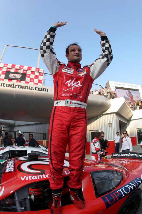 De openingsrace van het tweede seizoen in de Speedcar Series is gewonnen door Vitantonio Liuzzi. De voormalig Toro Rosso F1-coureur bleef op de Dubai Autodrome Frentzen en Morbidelli voor. Liuzzi kwam niet goed weg bij de rollende start en werd aan beide kanten aangevallen. Aan de buitenkant verscheen Frentzen terwijl aan de binnenkant Zoechling op dook. De Italiaan had het geluk dat Zoechling zich verremde en rechtdoor schoot, waardoor ook Frentzen moest uitwijken.