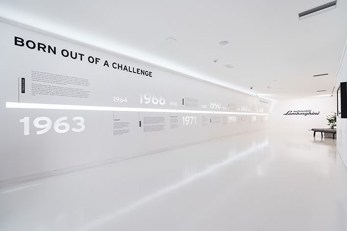 Het museum is van naam veranderd en volledig vernieuwd, zowel wat betreft de gemoderniseerde indeling en vormgeving als de tentoongestelde stukken. De nieuwe tentoonstelling "THE FUTURE BEGAN IN 1963" laat de meest emblematische tijdperken en representatieve momenten zien die de geschiedenis van Lamborghini's eerste 60 jaar markeren. Het verhaal begint met de evolutie van het merk en zijn producten van 1963 tot nu, te beginnen met oprichter Ferruccio Lamborghini. De 19 tentoongestelde auto's* zijn de helden en vertellen het verhaal van het merk en het iconische technische en design erfgoed van Lamborghini: aangeboren principes die het DNA van het bedrijf kenmerken.