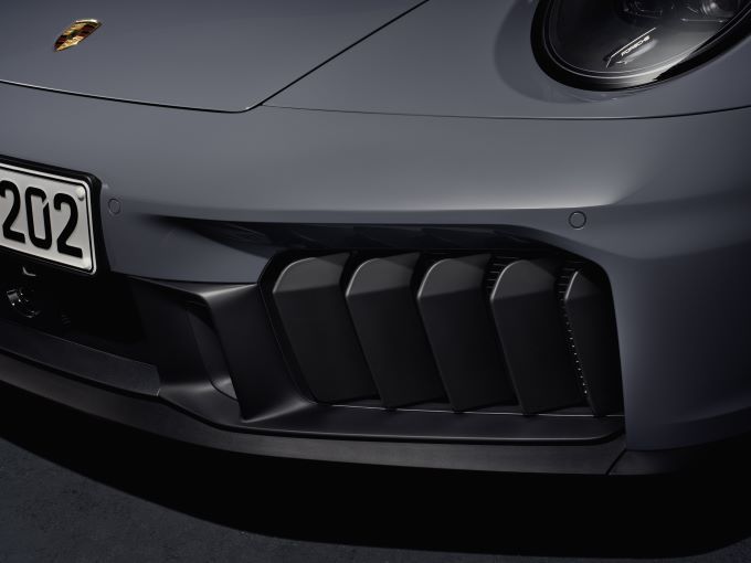 Porsche heeft het exterieurdesign van de 911 met gerichte maatregelen verder aangescherpt. Een groot deel van deze maatregelen verbetert de aerodynamica en de prestaties. Hiertoe behoren onder andere nieuwe voorbumpers. Ook integreert Porsche voor het eerst alle lichtfuncties in de standaard Matrix LED-koplampen van de 911 met hun karakteristieke vierpuntsoptiek. Optioneel biedt het merk de nieuwe koplampen met een HD-Matrix LED-functie met meer dan 32.000 lichtpunten. De mistlampen vervallen, wat ruimte creëert voor grotere koelopeningen. De 911 Carrera GTS heeft vijf zichtbare actieve koelkleppen en een verborgen koelluchtklep aan de voorkant, aangevuld met adaptieve voorste diffusers die samen de luchtstroom regelen voor een optimale aerodynamica en koeling.